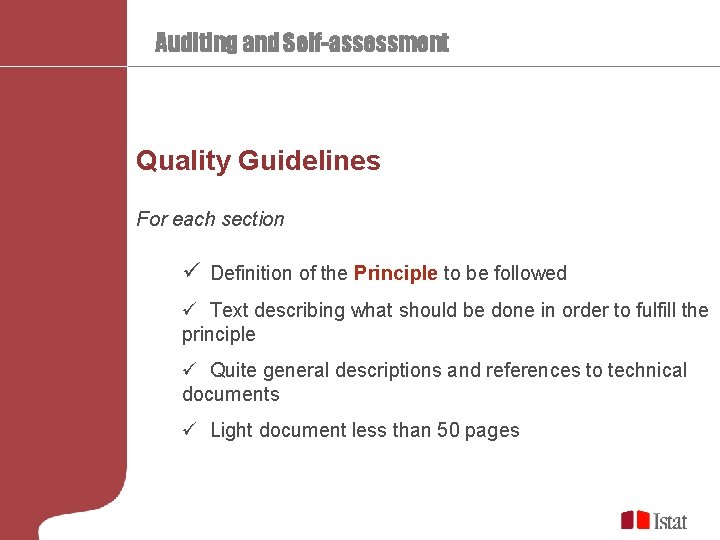 Auditing And Selfassessment Istats Experience High Level Seminar